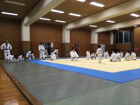柔道は受け身が大切!ということで、初回のこの日、教室参加者は受け身ばかりを練習していました。