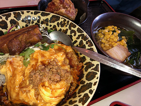 食べたのはおもてなし丼にミニラーメン、から揚げが付いたセット。