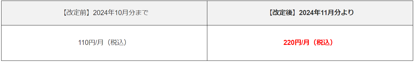 提供元であるJCOM株式会社の料金改定に伴い、2024年11月発行分より下記のとおり改定させていただきます。