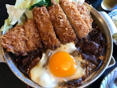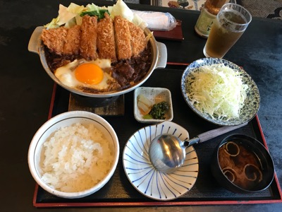 岡崎名産八丁味噌を使った土手鍋にとんかつ、卵。