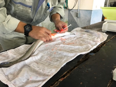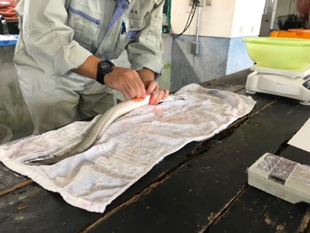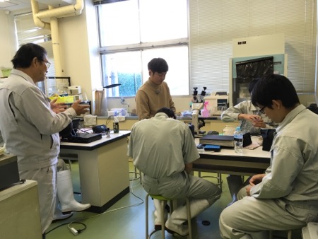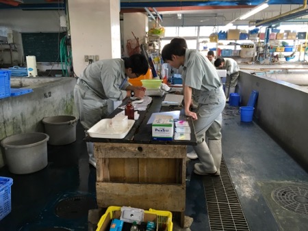 研究室みたいなところで、ひとしきり話を聞いてからは、実際にうなぎにホルモン注射?をするところを見せていただきました。