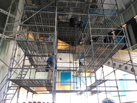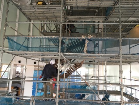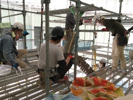 頭の取り付け作業を撮るために私も足場に登らせてもらいましたけれど、揺れて怖かったです…