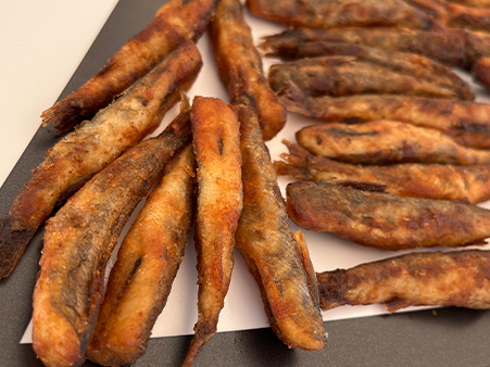 なんとメヒカリの唐揚げで文字を書いちゃいました。
