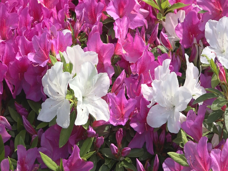 今月はツツジを紹介。ピンク色や白色の花を咲かせ、公園や沿道でよく目にする花。満開に咲き誇るツツジの様子をお届けします。