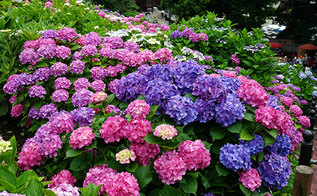 梅雨時期にしっとりと咲くエリア内の紫陽花の様子をお届けします。