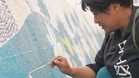 今回は2024年12月に完成した市民会館南側の堤防アート『蒲暦』でアートディレクターを務めた大角真子さんに密着。