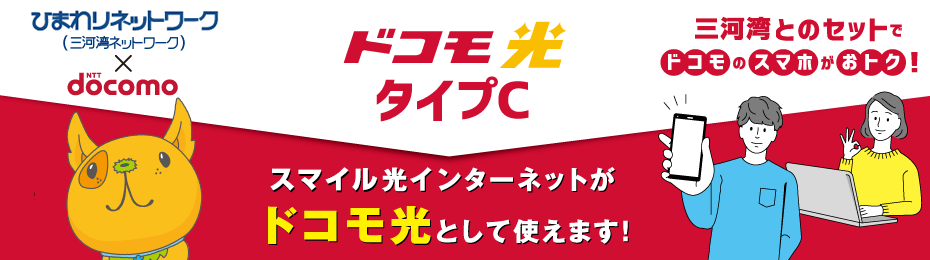 ドコモ光タイプCとは、三河湾ネットワークの設備を使ってドコモが提供する光インターネットサービスです。