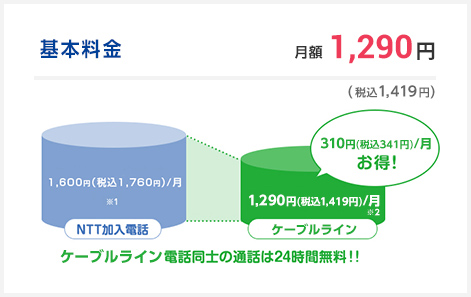 ※同一契約(世帯)内で、「ケーブルプラス電話」と「ケーブルライン」を同時に利用することはできません。
