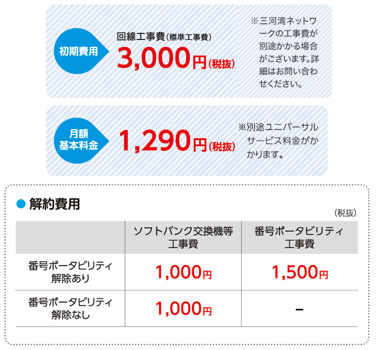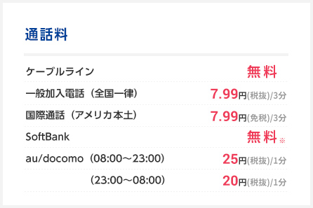 - ※別途ユニバーサルサービス料と通話料がかかります。