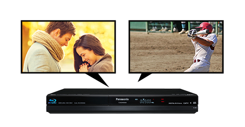 「海外ドラマも見たい!」「野球中継も見たい!」そんなときでも、楽録なら大丈夫!!ダブルチューナー搭載だからリアルタイムで野球中継を観ながら、裏番組の海外ドラマも録画が可能。また、録画したい番組が重なっても2番組同時録画が可能。
