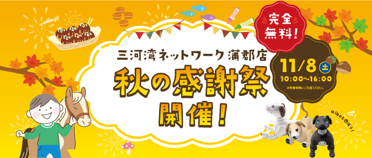 - 2025/10/31(金)11/8(土) 三河湾ネットワーク蒲郡店「秋の感謝祭」開催に伴う営業時間変更のお知らせ