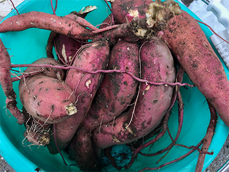 先日、会社の敷地内にある菜園でサツマイモの収穫をしました。