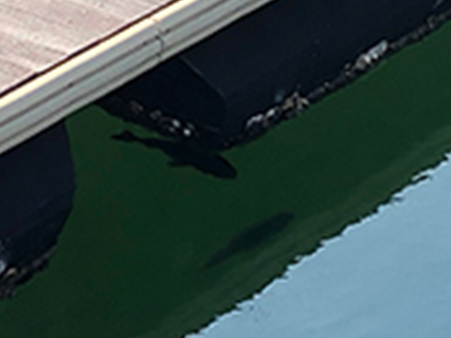 午前9時にマリーナの方と合流し取材艇がある桟橋を歩いていた時、信じられない光景が目に飛び込んできました!