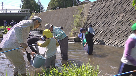 26日に幸田町内を流れる石川と光明寺川で川に生息する生物の観察会が行われました。
