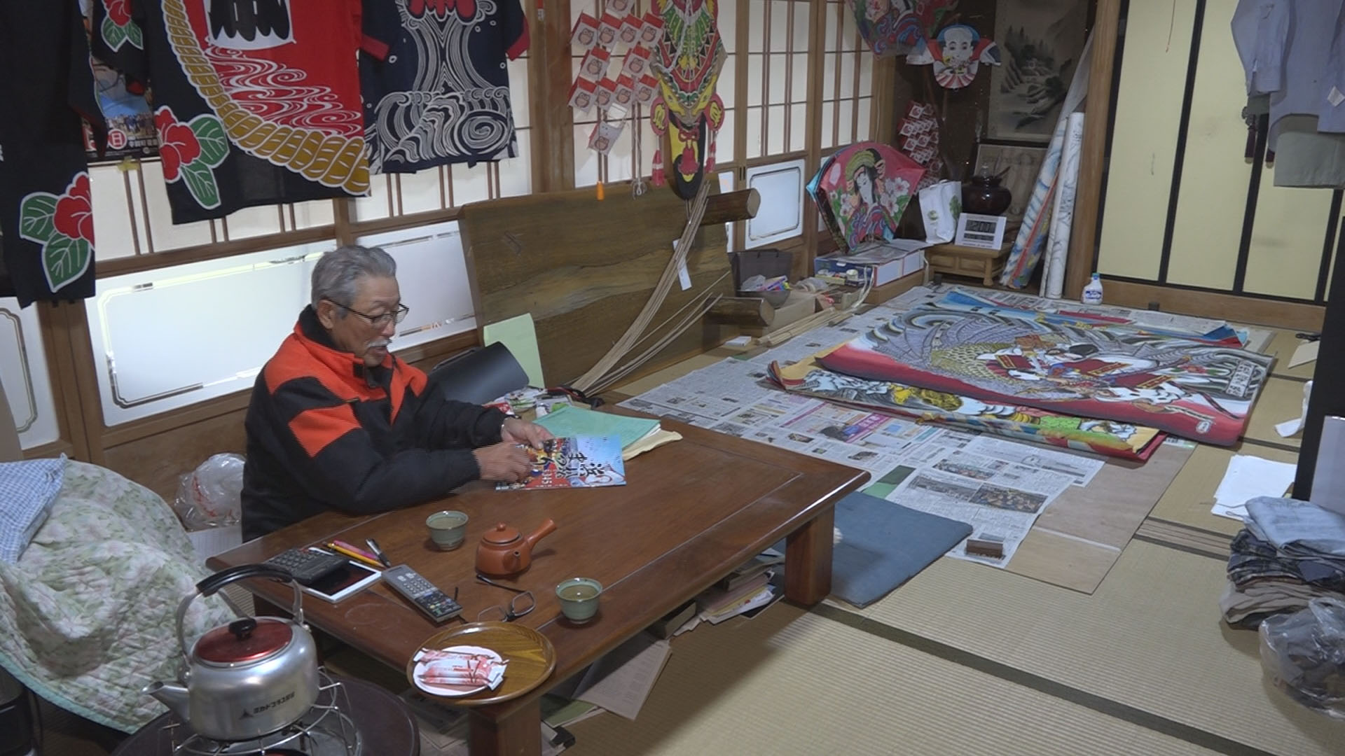 凧絵が完成したところからの撮影だったのだけれど、絵を描いた人が知っている人でびっくり!
