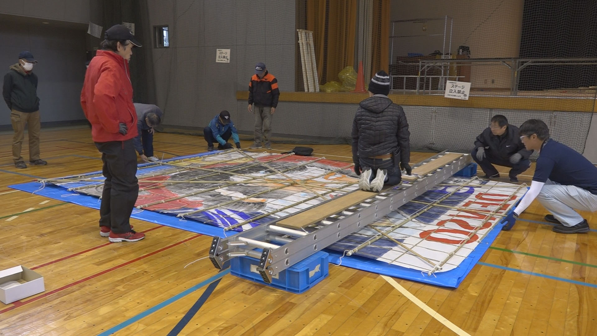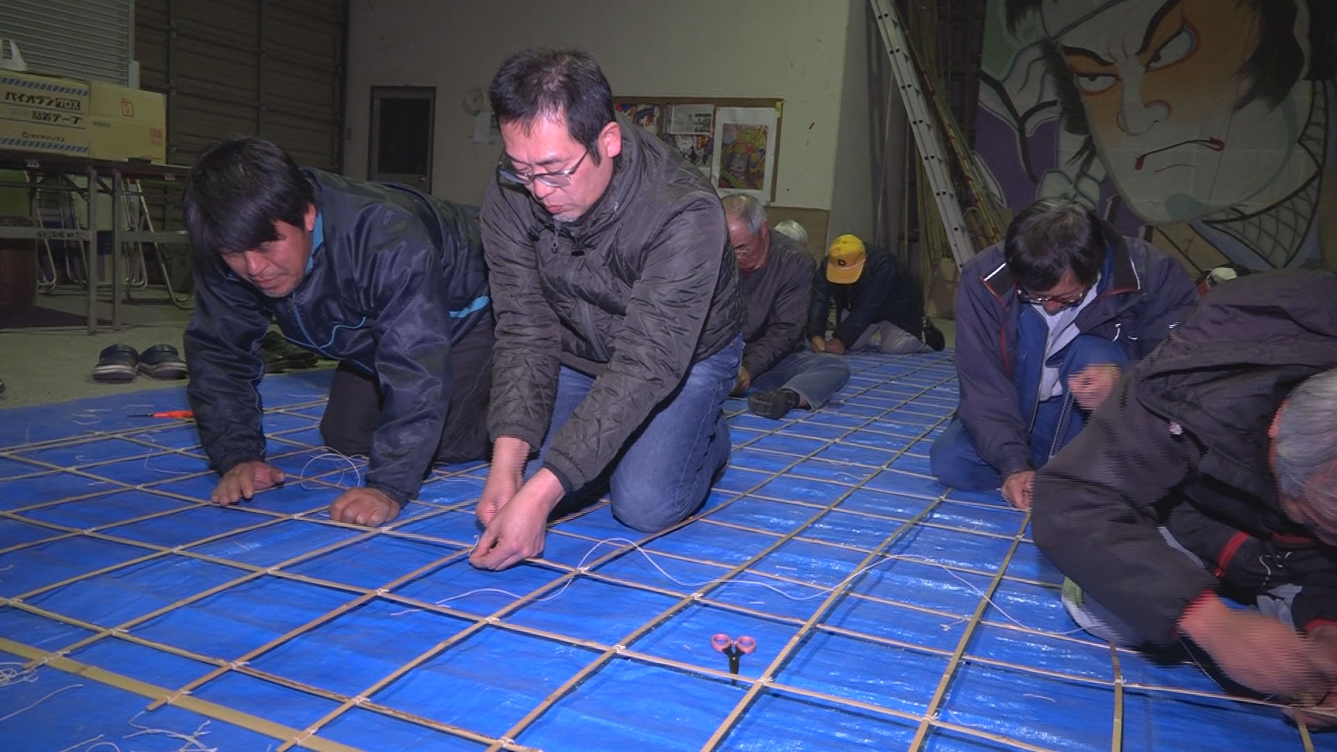 今年、大凧づくり初挑戦の六栗区にも何回か取材に行きました。