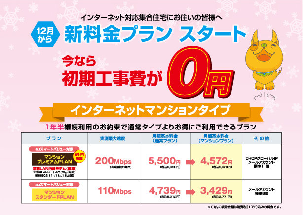 新料金プラン「インターネット マンションプラン」のご案内