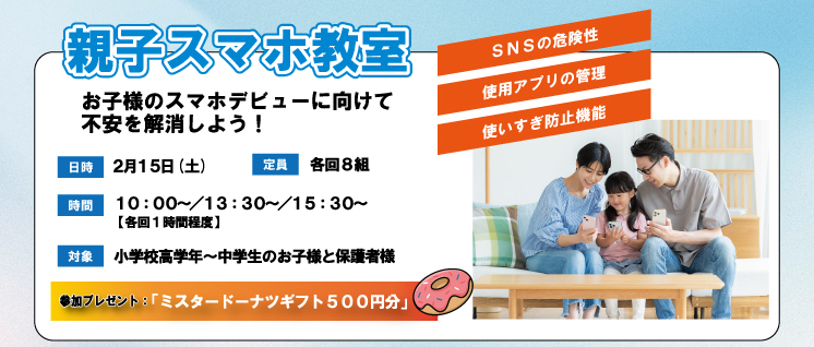 2/15(土)開催 三河湾ネットワーク蒲郡店 親子スマホ教室開催のお知らせ