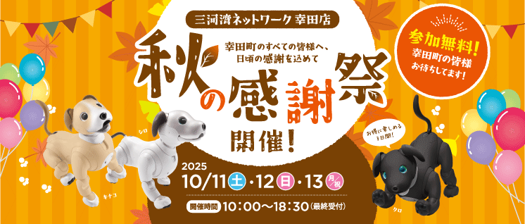 - 2025/10/03(金)10/11(土)~13(祝) 開催 三河湾ネットワーク幸田店 秋の感謝祭開催!