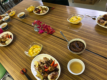 こうた食生活改善ボランティアの方達は、いつもお洒落なお皿やハーブなどの飾りを持ってきてくれます。