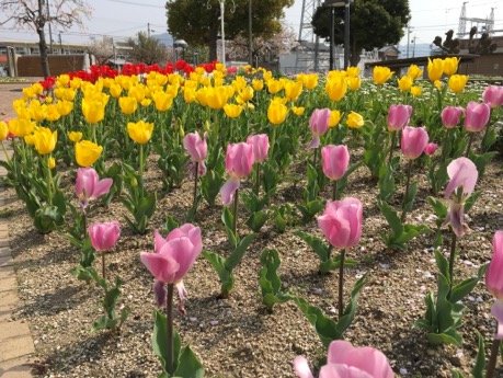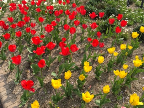 チューリップ、今の時期、エリア内ならラグーナテンボスのフラワーラグーンがきれいですね。