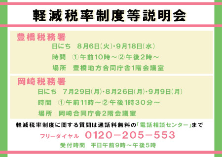 この日、豊橋税務署と岡崎税務署の方が来社され、軽減税率制度の説明会についてPRをしてくださいました。