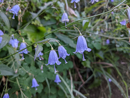花期は8月から10月で淡紫色の鐘形の花を下向きに咲かせます。