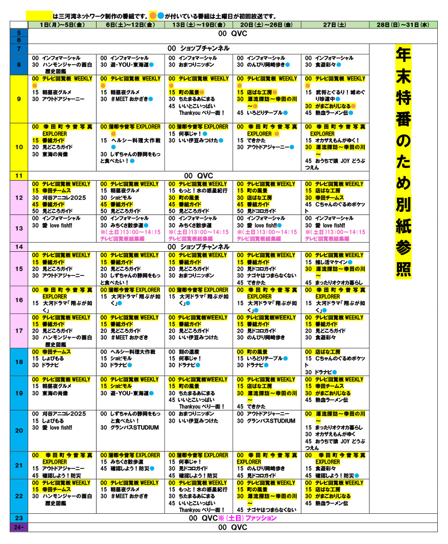 2025年12月年末番組表