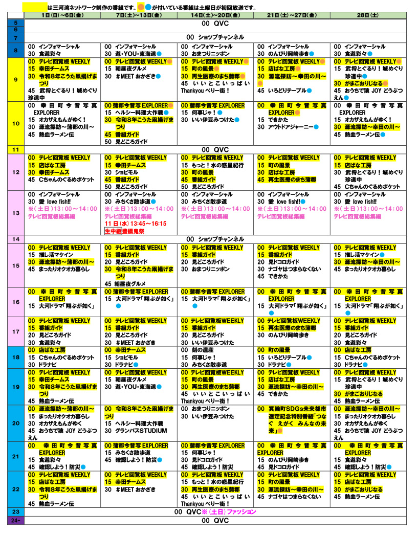 2026年2月番組表