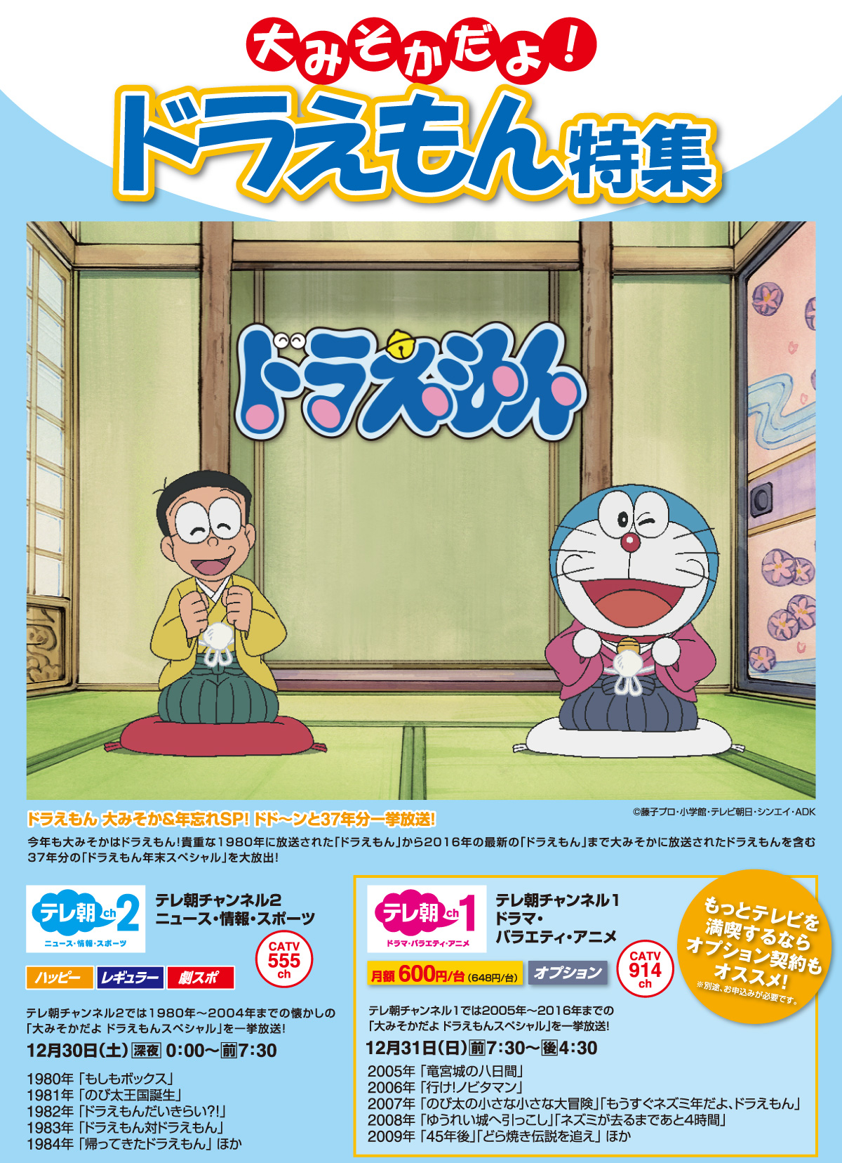 HOME>番組案内>今月のスマイルチャンネル>専門チャンネルおすすめ番組 ドラえもん特集